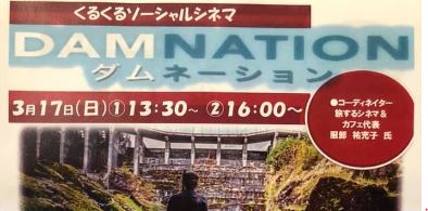 ***** くるくるソーシャルシネマ **** 「DAMNATION ダムネーション」上映 ~~~ Story ~~~ 破壊すべきダムがあるかぎり “ダムバスター”は挑戦し続ける 自然の良さは人間が何もしなくてもいいこと。 ただそのままにしておけばいい。 7万5... -