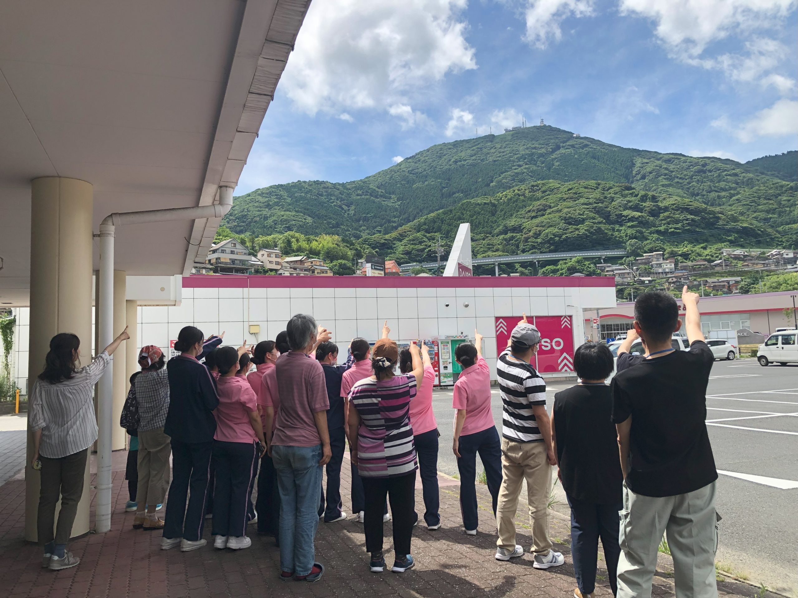 毎月8日の「やはた一斉ごみ拾いの日」では、常連できてくださる地域のボランティア親子さんも加わり、わくわーくの周辺をきれいにしました。この日のお約束事、活動終わりに《皿倉山をみあげる》ミッションクリアです!