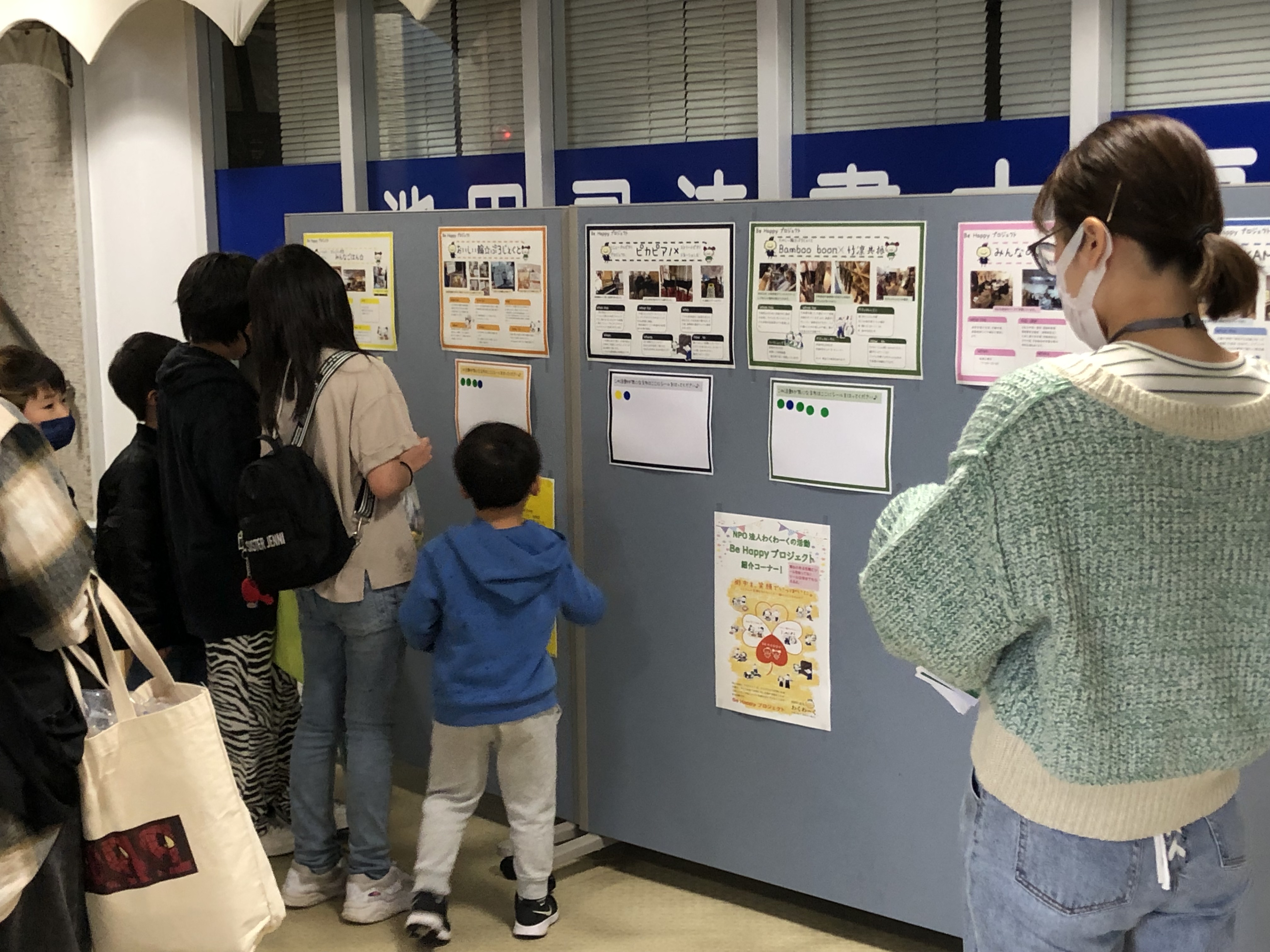 Be Happy プロジェクト紹介コーナーでは、気になるプロジェクトの活動紹介の下にシールを貼ってもらいましたよ!