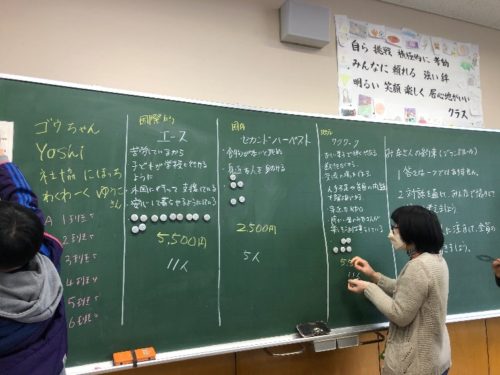 寄付の教室の開催日の夕方、授業を受けた6年生3人組の男の子たちが、本当のお小遣いを握ってわくわーくのお店・くるくるにやってきました。