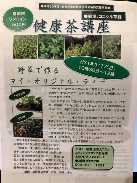 3/17開催 健康茶講座 ~野草で作るマイ・オリジナル・ティー~